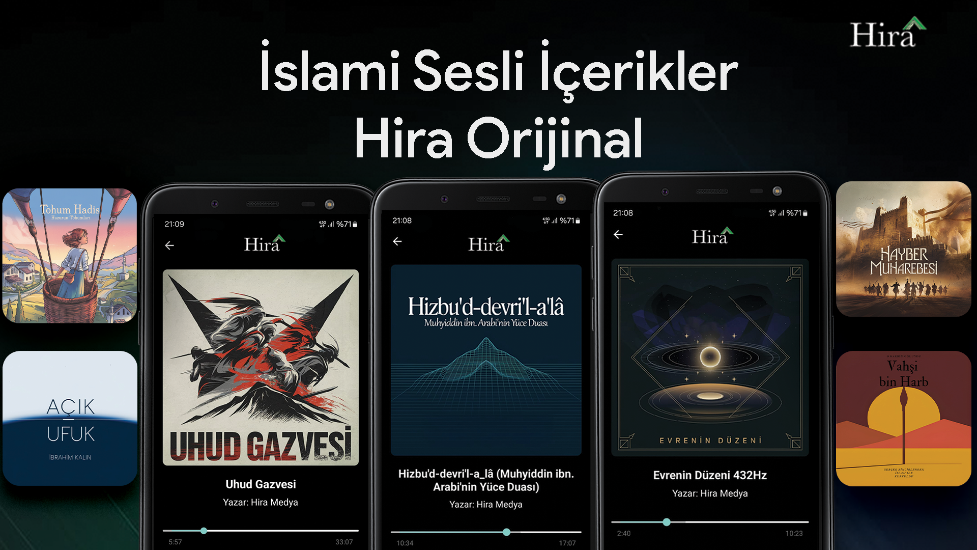 Vahyin ilk kelimesi "Oku" dan ilham alan Hira, okumayı dinleme ile buluşturan yeni nesil bir sesli içerik platformudur. Kur'an, Hadis, Siyer, İslam tarihi ve büyüklerin hayatlarından özgün yapımlara, çocuklara özel hikayelerden atmosfer ve efektlerle zenginleştirilen sürükleyici sesli tiyatro eserlerine kadar geniş bir içerik yelpazesi sunuyoruz. Hira, profesyonel sanatçı kadrosu ve yüksek teknik standartlarıyla sadece huzur veren değil, ilham kaynağı olan ve dinleyicisine yepyeni ufuklar açan bir deneyim vadediyor.